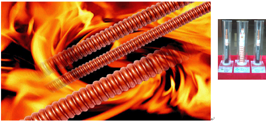 1.按GB12666.6電線(xiàn)電纜燃燒試驗方法耐火特性試驗:A類(lèi)在火焰溫度950~1000℃中燃燒,相間及外護套之間施加750V電壓,歷時(shí)90min不損壞。而且還滿(mǎn)足BS6387中性能指標噴水和撞擊試驗。