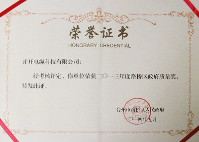 熱烈祝賀我司榮獲2013年度路橋區政府質(zhì)量獎。