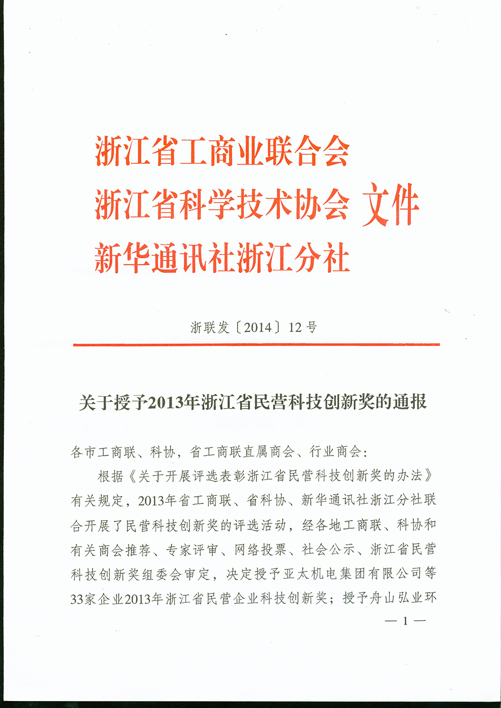 致力于為社會(huì )提供安全、節能、環(huán)保的電線(xiàn)電纜產(chǎn)品和服務(wù) 近日,開(kāi)開(kāi)電纜獲得了2013年浙江省民營(yíng)企業(yè)科技創(chuàng )新獎,該獎項為企業(yè)申報、由浙江省工商聯(lián)、浙江省科技協(xié)、新華通訊社浙江分社聯(lián)合開(kāi)展的2013年民營(yíng)科技創(chuàng )新獎評選活動(dòng),是經(jīng)各地工商聯(lián)、科協(xié)和有關(guān)商會(huì )推薦、專(zhuān)家評審、網(wǎng)絡(luò )投票、社會(huì )公示、浙江省民營(yíng)科技創(chuàng )新獎組委會(huì )審定的,最終有33家民營(yíng)企業(yè)獲得2013年浙江省民營(yíng)企業(yè)科技創(chuàng )新獎。