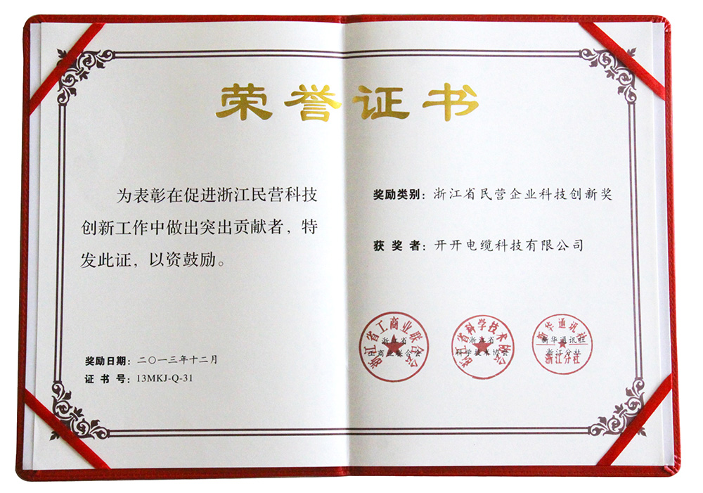 熱烈祝賀我公司榮獲浙江省民營(yíng)企業(yè)科技創(chuàng )新獎。