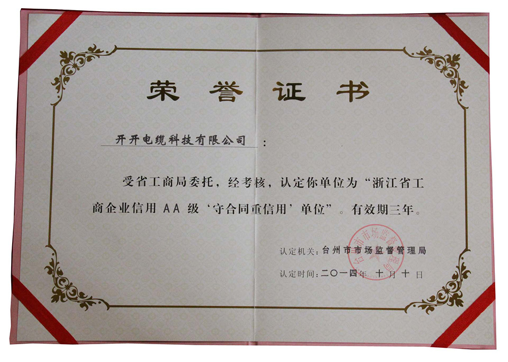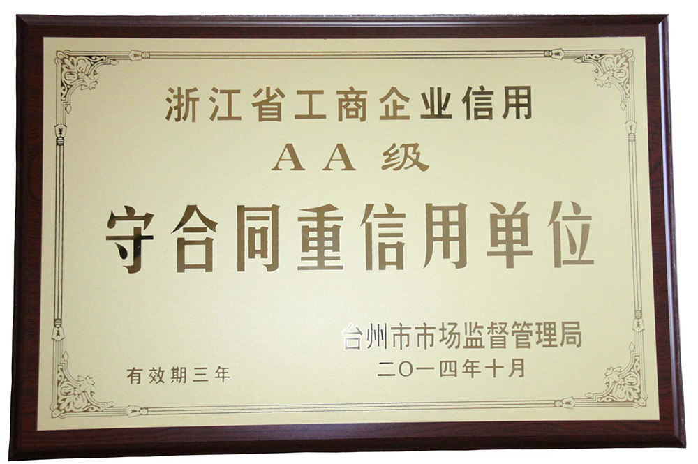 熱烈祝賀我公司榮獲‘浙江省工商企業(yè)信用AA級‘守合同重信用’單位”。